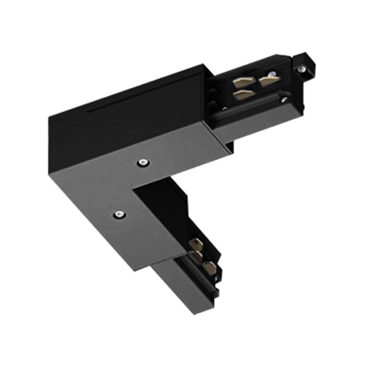 L-Verbinder ONETRACK DALI schwarz, mit Polarität aussen, mit Einspeisemöglichkeit, aus Polycarbonat, kupferlegierte Kontakte, max. Drehstromnetz 3 x 3.6 kVA Nennstrom und Nennspannung: 16 A / 440 V (1 A / 50 V AC FELV), werkzeuglose Einrastbefestigung, Schraubkontakte mit Mutter – Von A.A.C. Stucchi